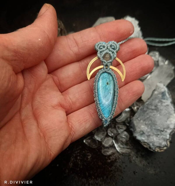 Labradorit mit Schokoladenmondsteinperle