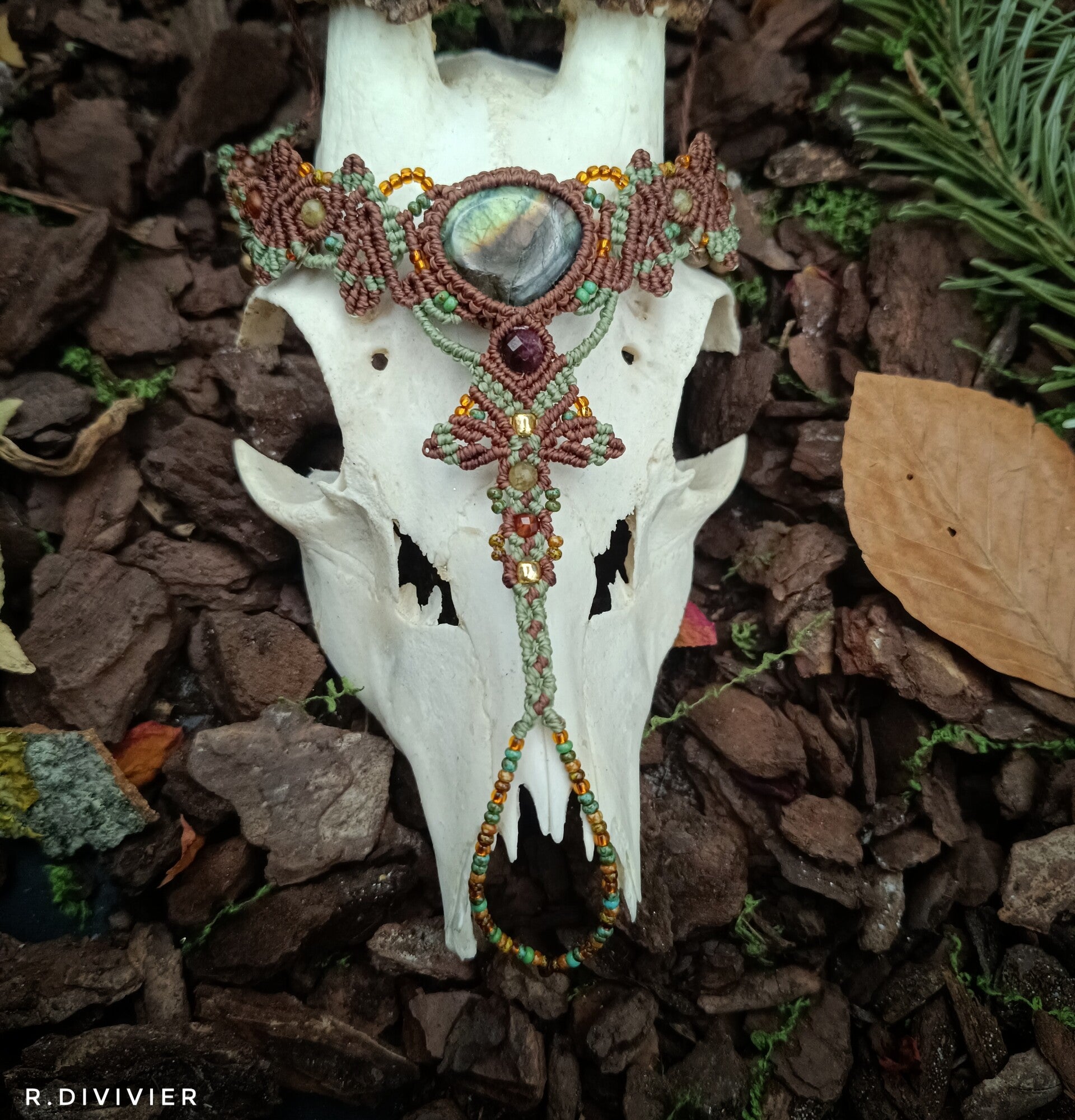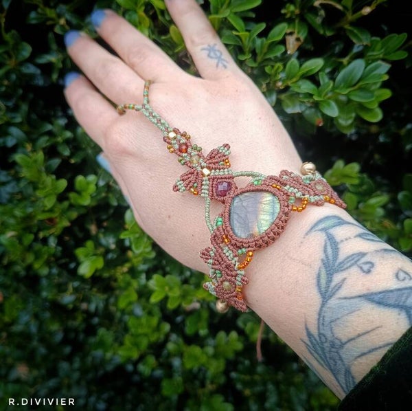 Handgeknüpfter Makrameehandschmuck mit Labradorit, grünen Granat-, Hessonit- und Granatperlen
