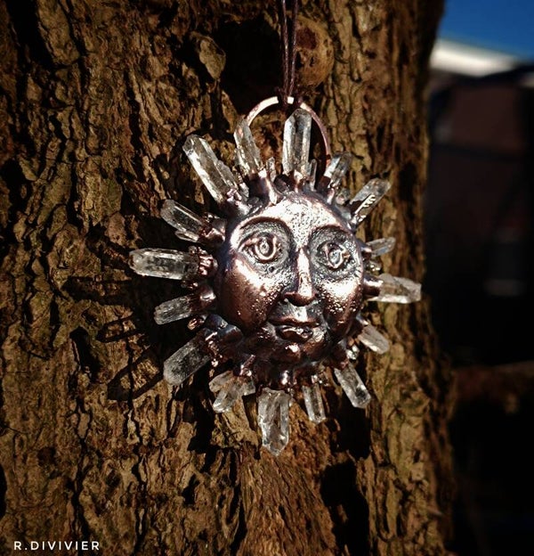 Verkupferter Wachsabguss mit Bergkristallspitzen