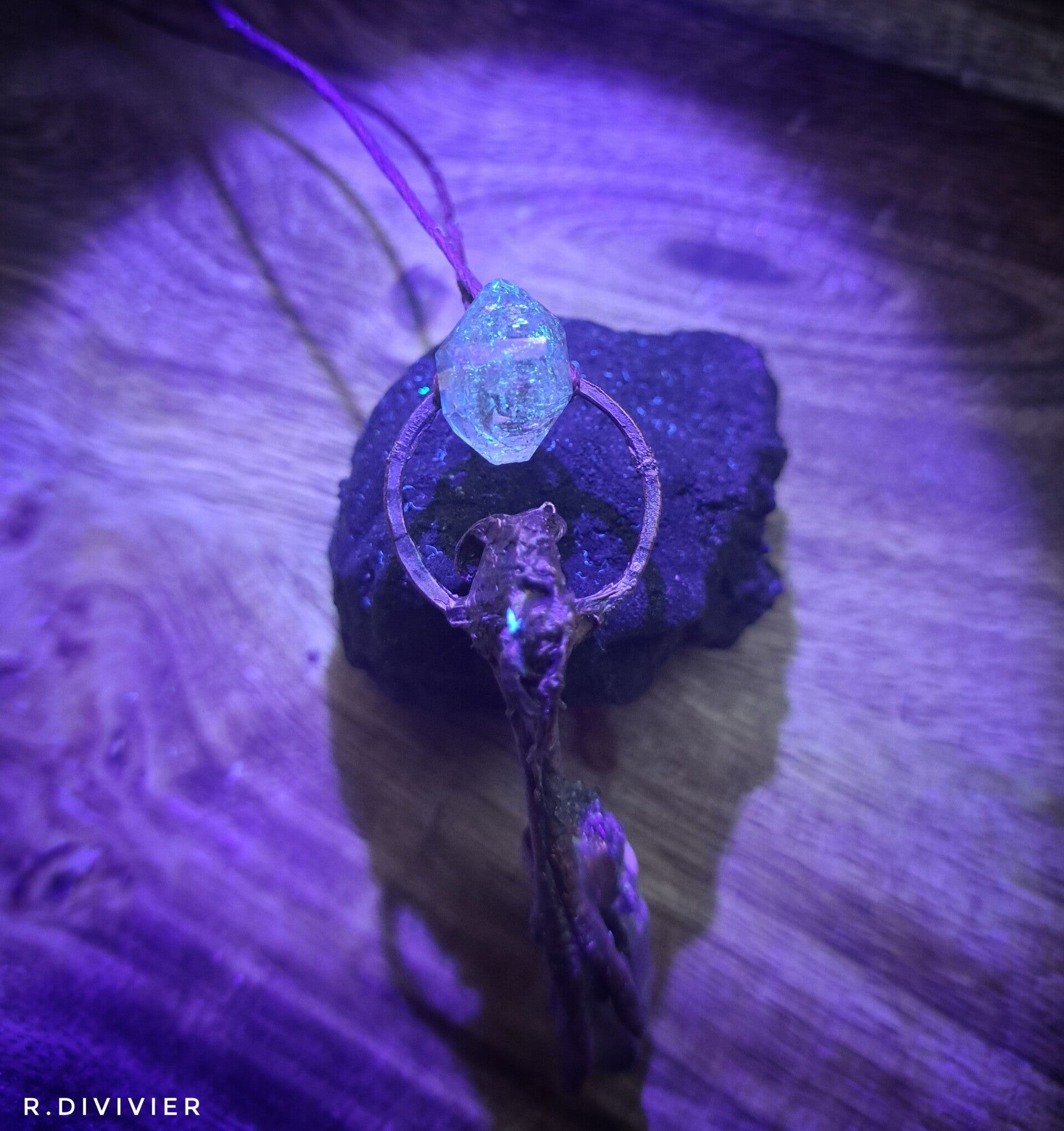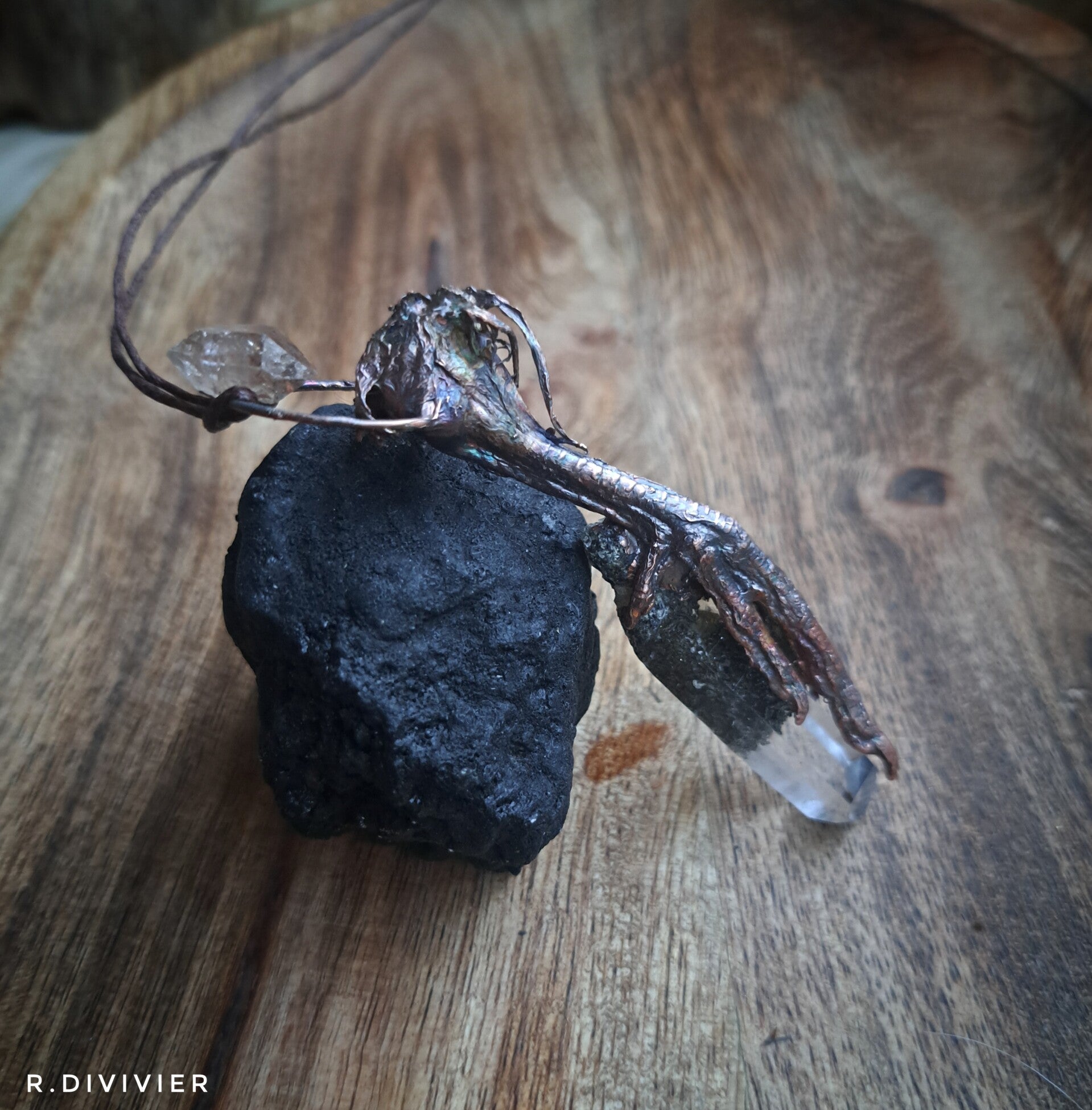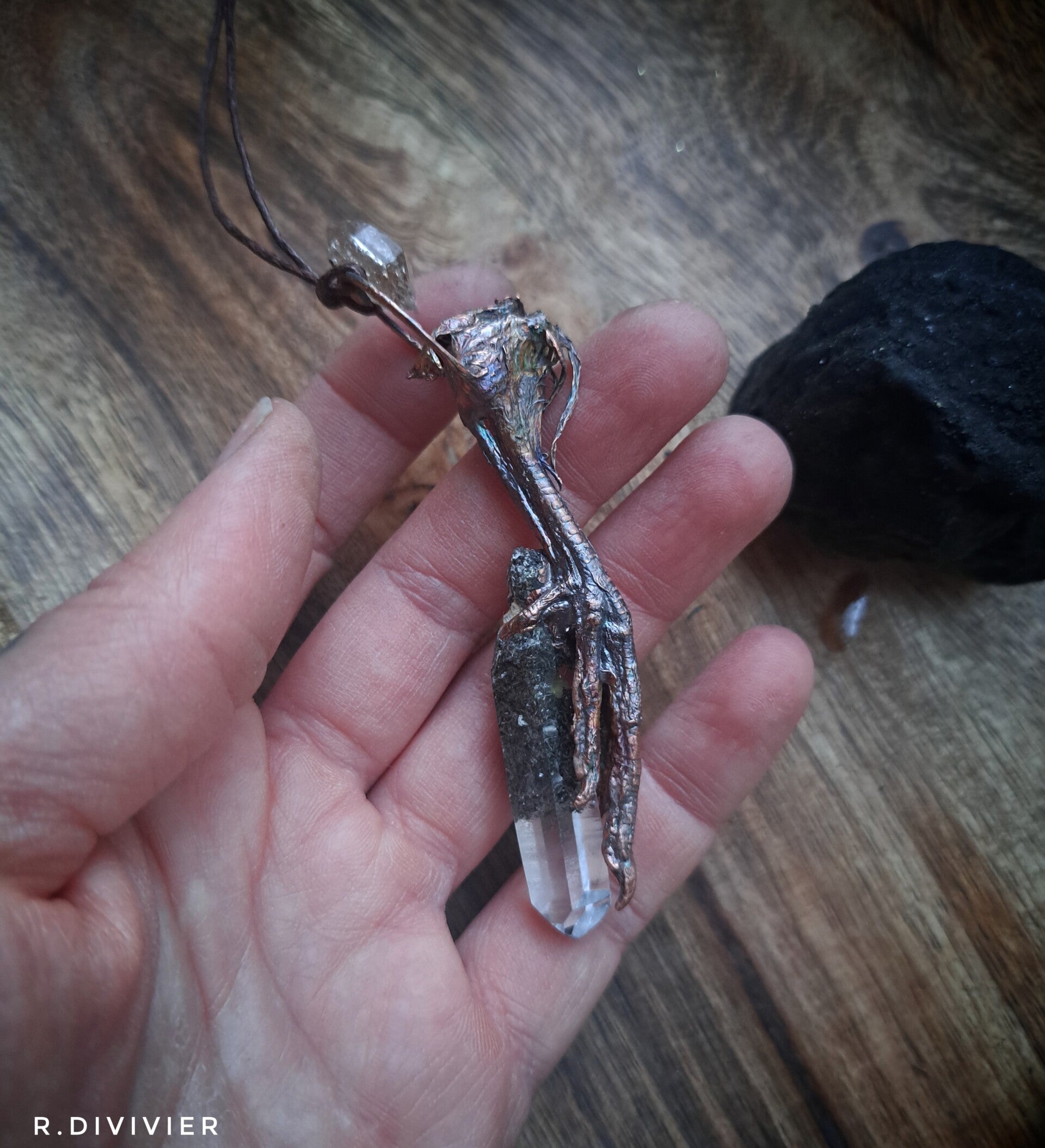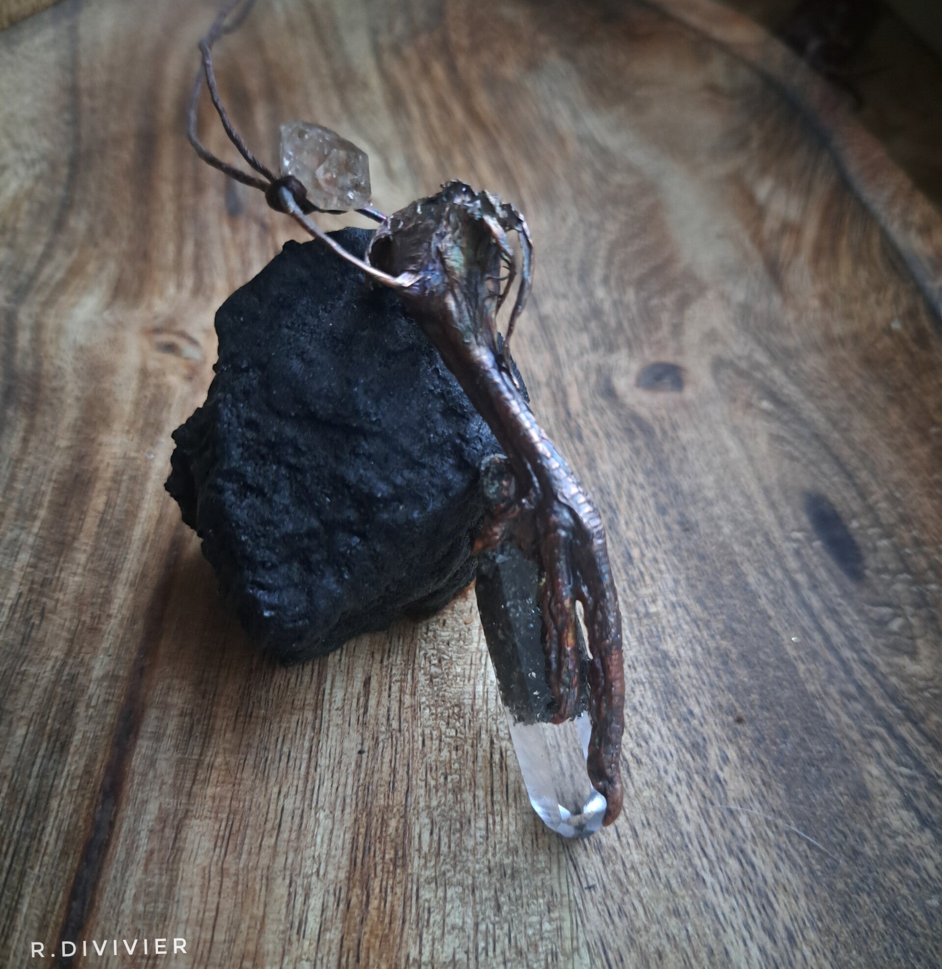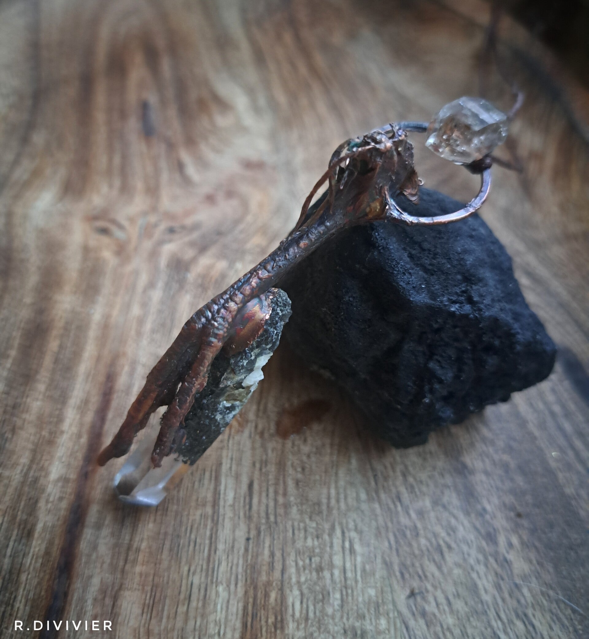 Wachtelfuss mit Lodolith und Petroleumquarz,verkupfert.